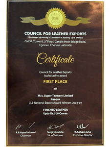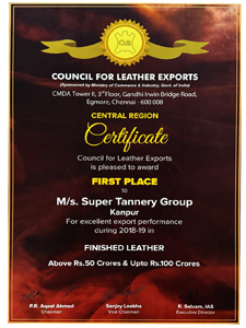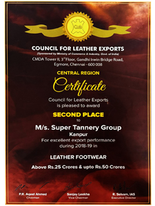 Your browser does not support the video tag. Certifications Recognitions Above Rs. 100 Crores & Upto Rs. 200 Crores Upto Rs. 100 Crores in Finished Leather Category Council For Leather Exports State Export Awards Year 2022-23 The State Export Award 2021-22